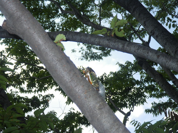 今回の写真は、会社前の街路樹、と、その木にとまってる蝉です。